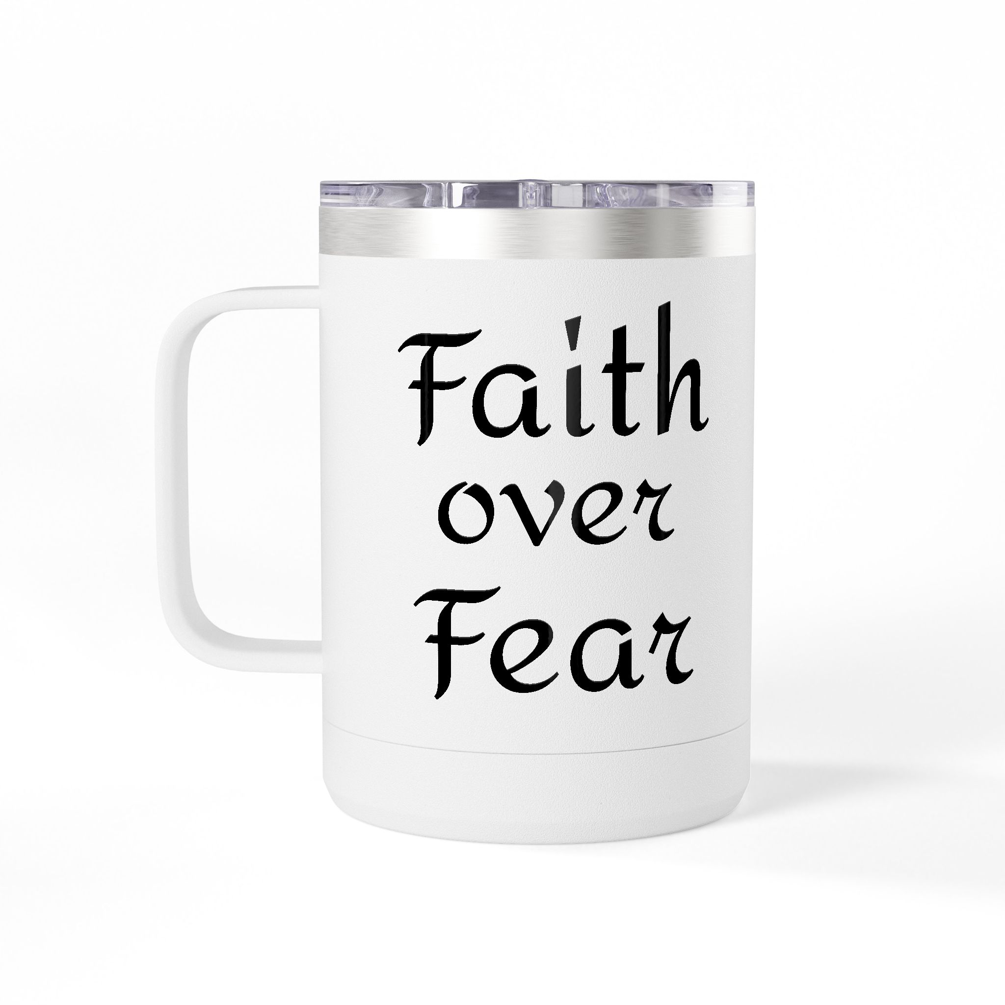 15oz White Travel Mug Tumbler — Minimal Script Design